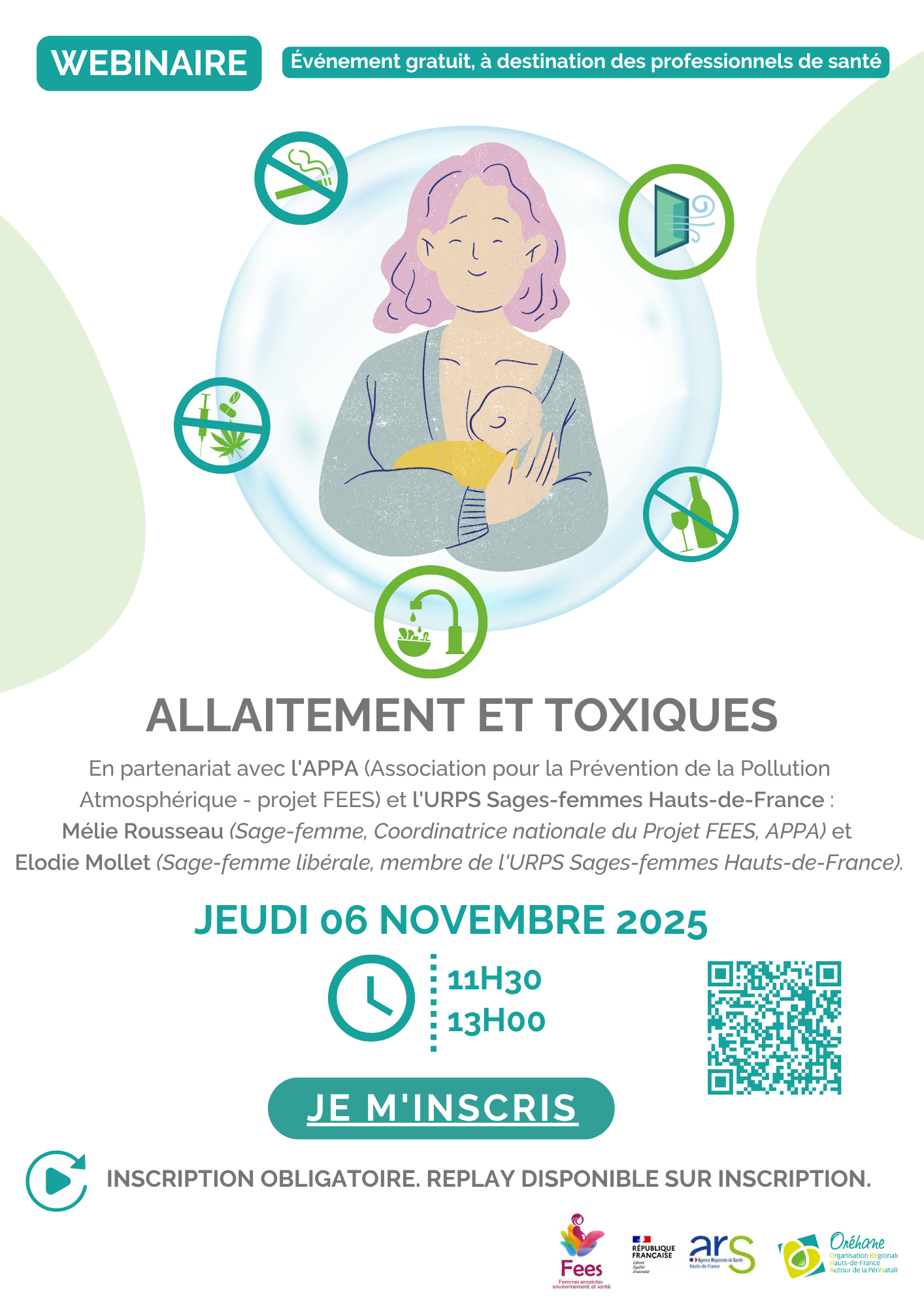 En partenariat avec : l’APPA (Association pour la Prévention de la Pollution Atmosphérique – projet FEES) et l’URPS Sages-femmes Hauts-de-France : Mélie Rousseau (Sage-femme, Coordinatrice nationale du Projet FEES, APPA) et Elodie Mollet (Sage-femme libérale, membre de l’URPS Sage-femme Hauts-de-France).